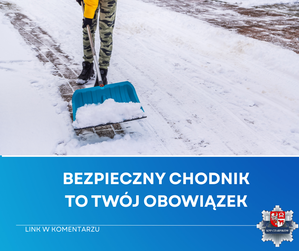 Przypominamy o obowiązku odśnieżania chodnika wzdłuż posesji. Regularne działania ograniczają ryzyko wypadków.